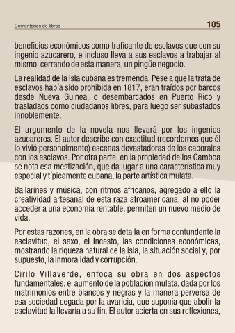 Cirilo Villaverde, enfoca su obra en dos aspectos