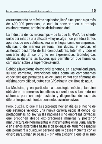o en ciertos asteroides hasta el despliegue del turismo espacial