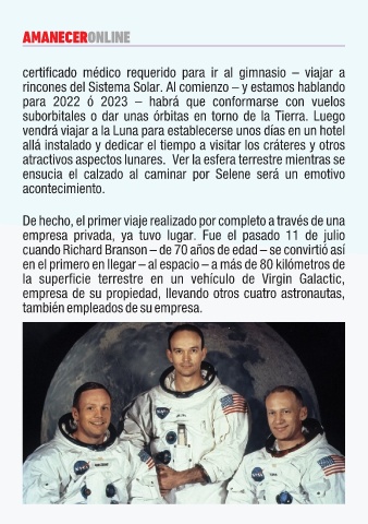 suborbitales o dar unas órbitas en torno de la Tierra. Luego