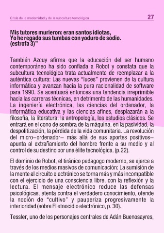 Crisis de la modernidad y de la subcultura tecnológica 27
